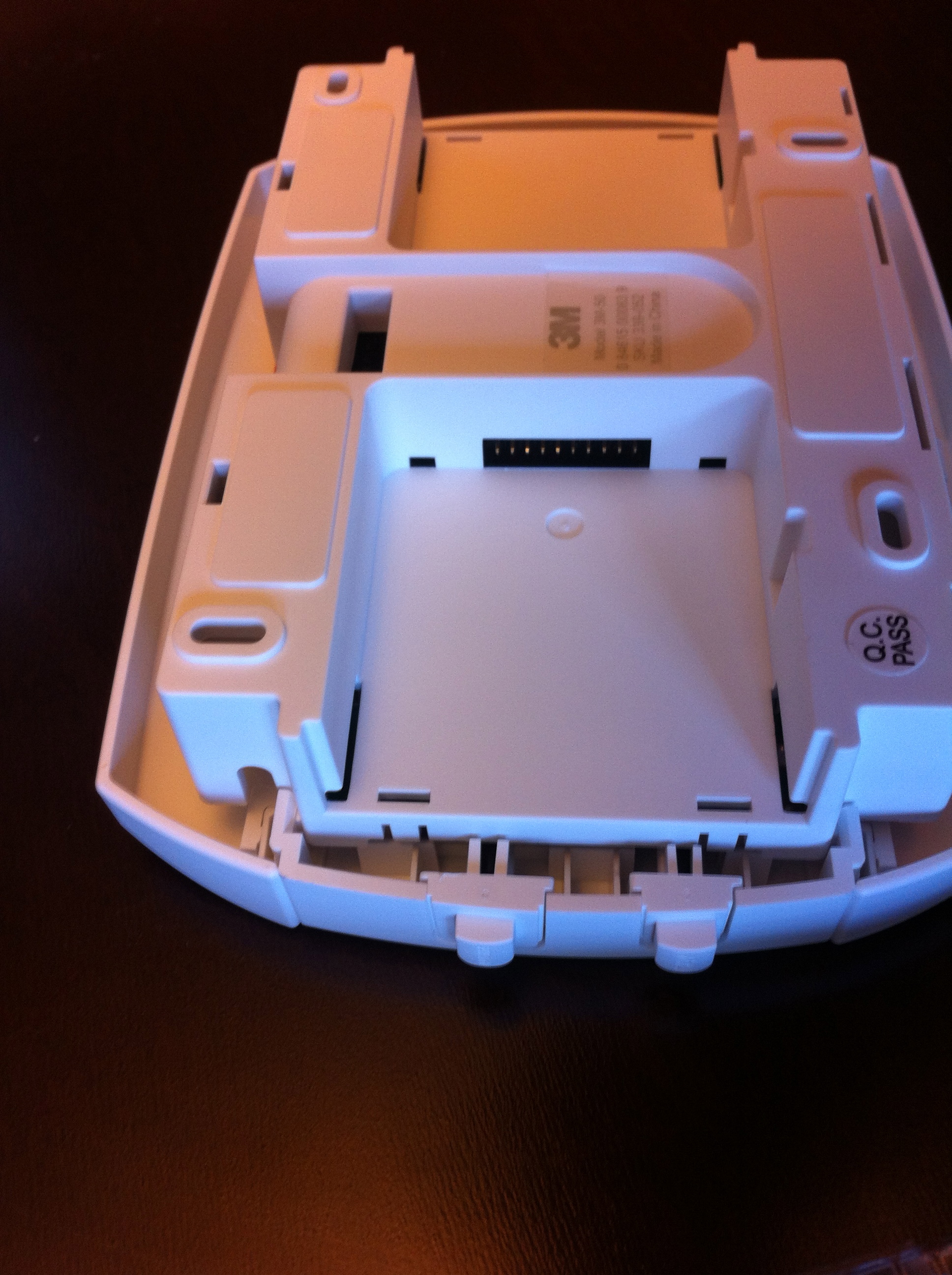 After some separation of the various bits and pieces, I got a good look at the back of the thermostat which is where the radio module gets installed. This is a ‘standard’ thermostat that has two UNSAP (Utility Smart Network Access Port) radio module slots on the back of it and the WiFi module is actually a separate modular piece: