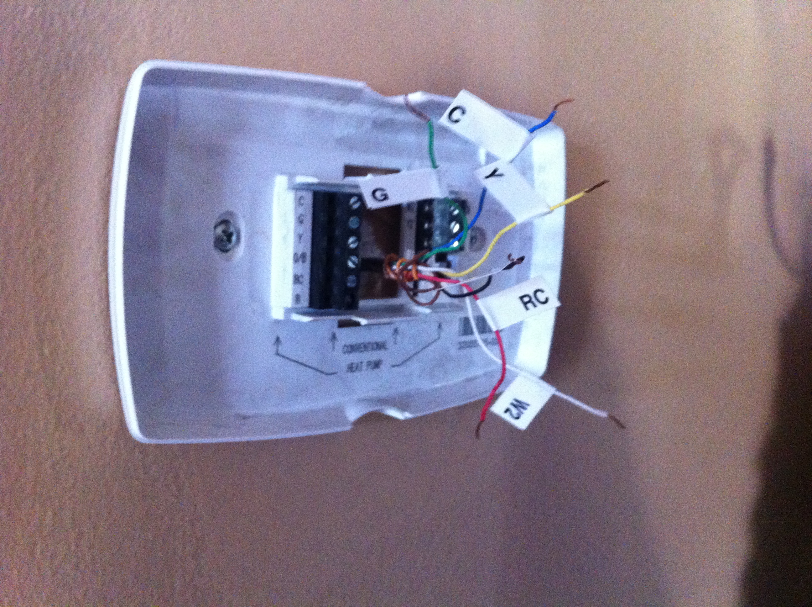After digging into the installation directions, there were a few things of significant note: 1) There are a variety of HVAC types of systems and 2) There is no formal standard for wiring them. This means you have to be very diligent about observing the existing cabling from your current thermostat. You should turn off the breaker to your existing HVAC at this point since you’ll be plugging and unplugging live wires. After confirmation that the power to your HVAC is off, you will have to open up your existing thermostat and observe the markings on it to determine and label the wires correctly: