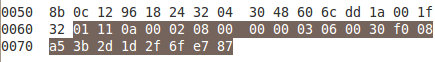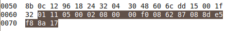 Here is another capture showing a single StreetPass service identified by the 3rd highlighted byte (05) and the following ID of 00 02 08 00 00. This particular StreetPass service is the Mii Plaza – basically ad-hoc twitter and IRC with goofy avatars all rolled into one!