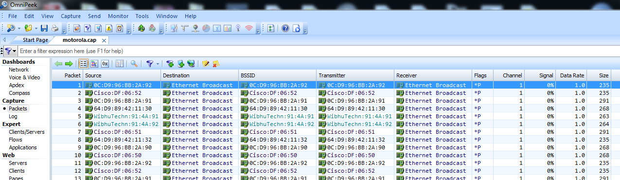 The packets don’t lie. Any CWAP will tell you that. They’re the foundation of what we do in networking and one of the most troublesome things to get your hands on at times. One of the most significant challenges is that you rarely get to capture the ‘radio view’ of your packets. It’s usually a conversation about getting close enough to a radio, or putting an adapter or radio into promiscuous or sniffer mode and listening to what you can hear – this has always seemed somewhat ‘best effort’ to me since there’s always a small chance you’re not listening at the time that a packet is on the air. Wouldn’t it be much better to just have a copy of the packets that hit your Access Points radio interface just copied off somewhere for you to explore at your leisure? That way you have an honest view of what the actual infrastructure is either sending or receiving. Well, that’s exactly what Motorola allows us to do with a superbly easy to use, yet very powerful feature of their Wi-NG 5 Operating System. Once you have a radio up in Wi-NG 5, you can telnet/SSH to the Access Point and use the service pktcap command to capture your packets – while servicing clients!