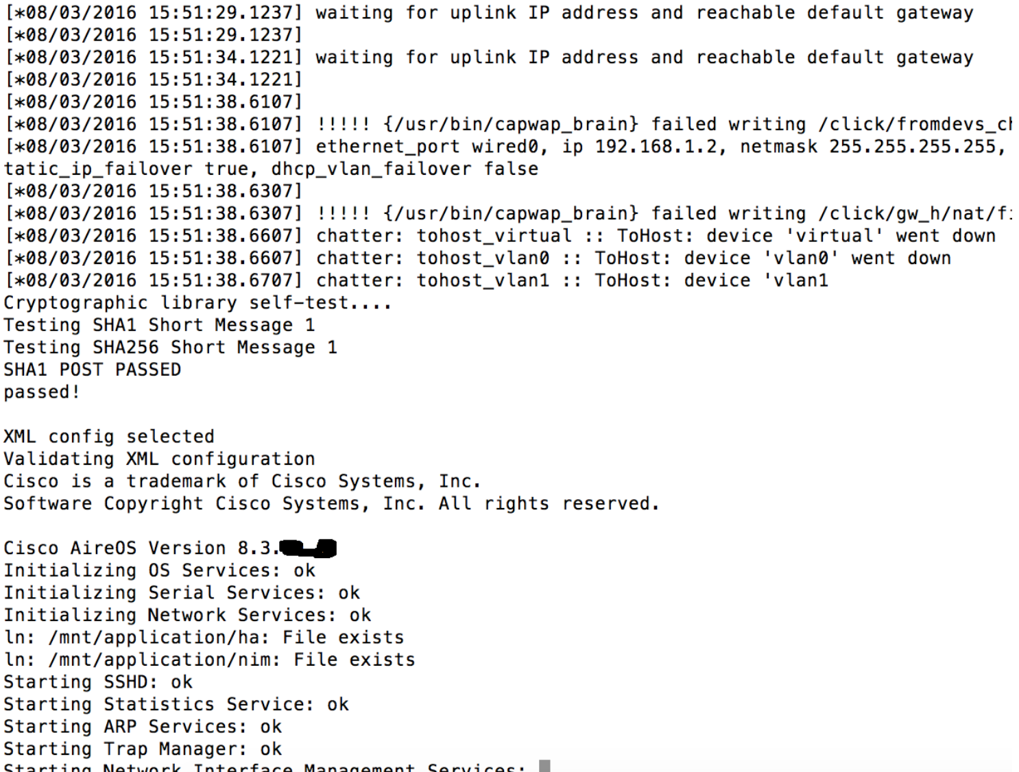 At this point your Access Point will do several things. It will boot and you will see about 2 minutes of the following messages:
